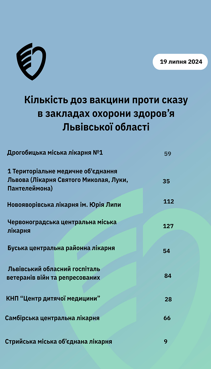 Кількість доз вакцини проти сказу у закладах охорони здоров`я Львівської області