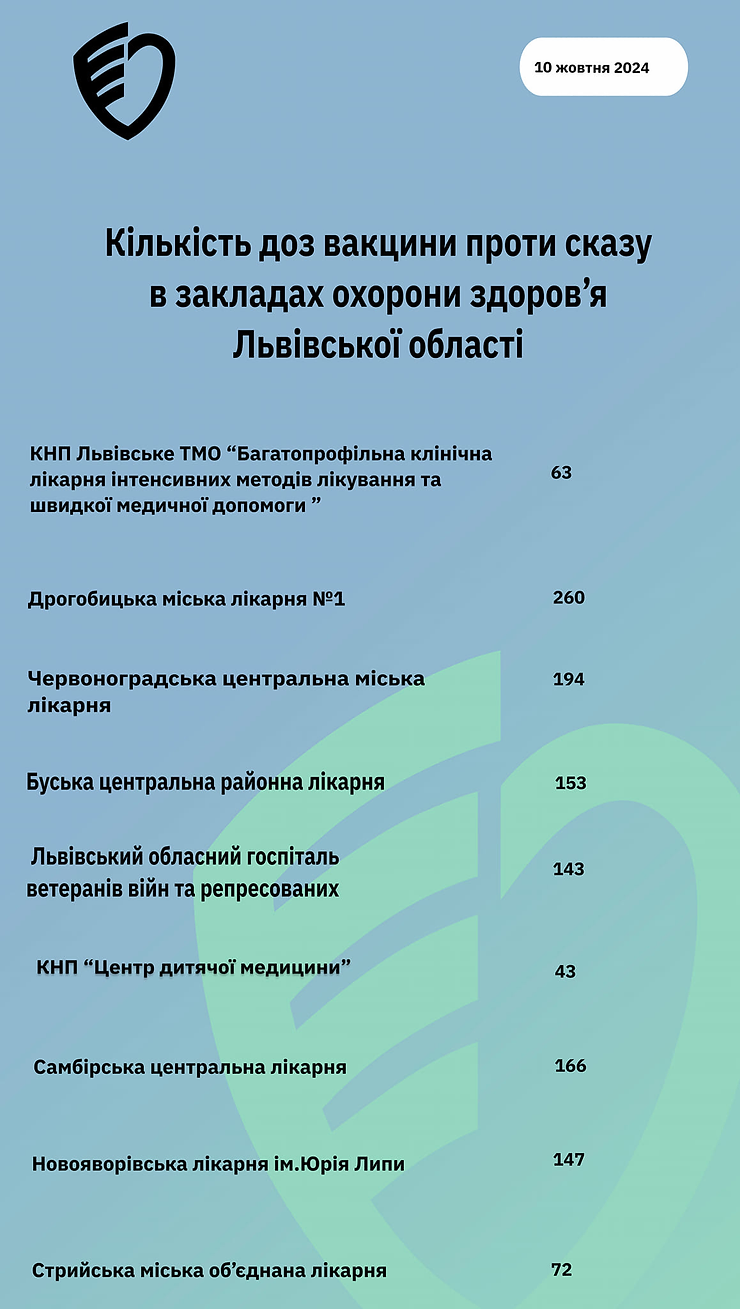 Кількість доз вакцини проти сказу у закладах охорони здоров`я Львівської області