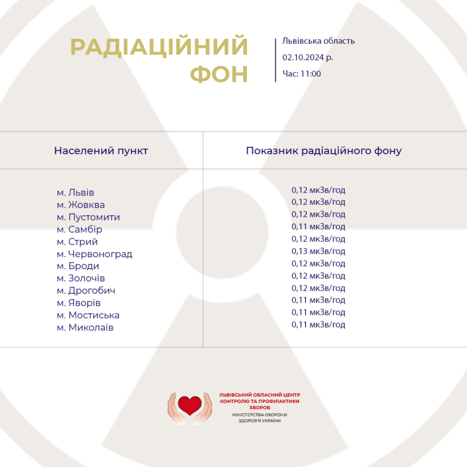 Моніторинг радіаційного фону на Львівщині 02.10.2024 року