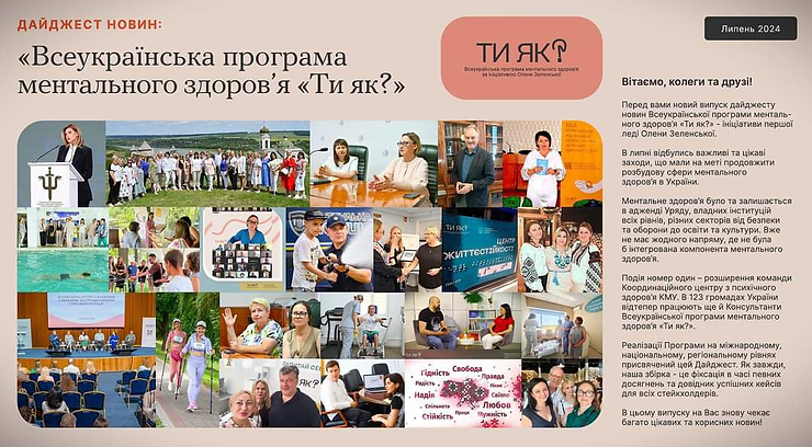 Дайджест новин: «Всеукраїнська програма ментального здоров’я Ти як? Регіональна координація». Липень 2024