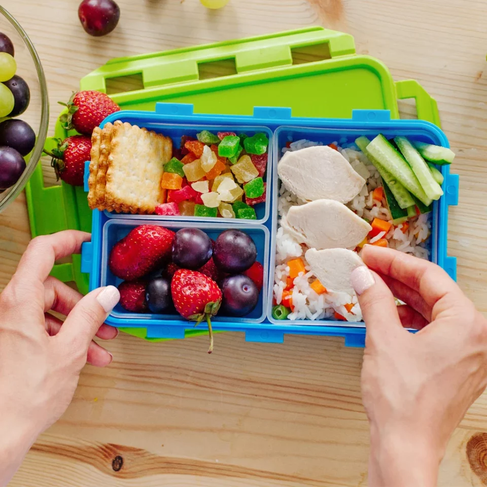 Основне правило: ланчбокс має максимально повторювати тарілку здорового харчування. Тобто містити всі групи продуктів: овочі та фрукти, зернові та білкові продукти. Також слід обов’язково подбати, щоб їжа булла різноманітною та бажано і різнокольоровою.