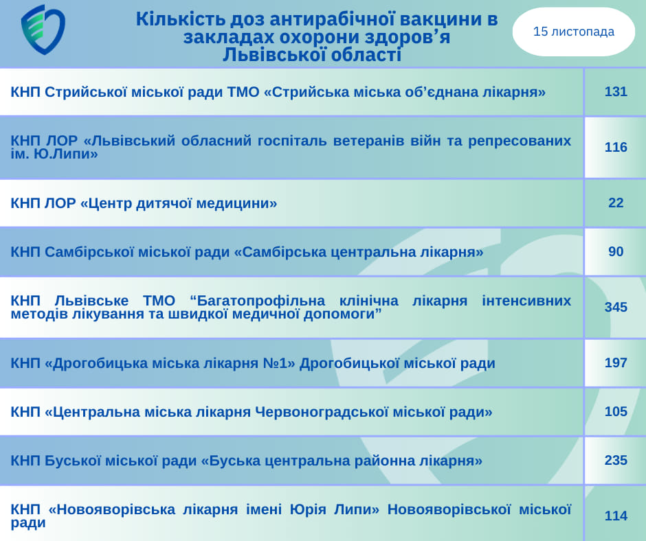 Кількість доз антирабічної вакцини у закладах охорони здоров`я Львівської області