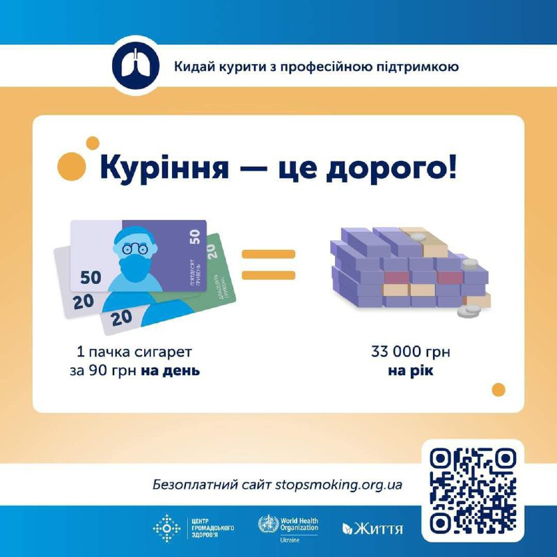 А за допомогою простого калькулятора за посиланням stopsmoking.org.ua/section/finansovi-perevagi тобі вдасться розрахувати кількість втрачених та збережених коштів і років життя.