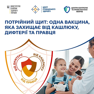 Більше інформації про небезпеки від кашлюку (https://tinyurl.com/59fr8rfz), дифтерії (https://tinyurl.com/b3htkevv) та правця (https://tinyurl.com/msz298j3).