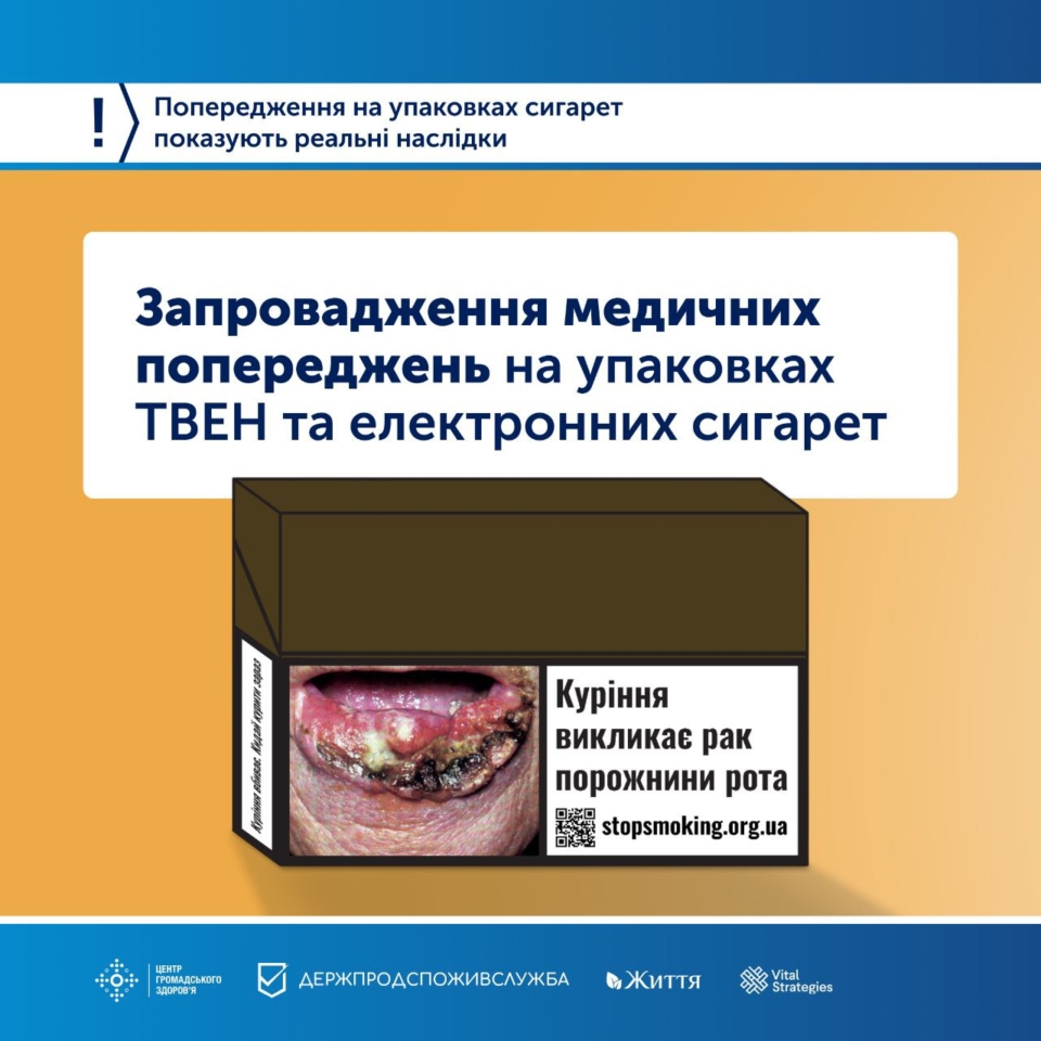 «Всі тютюнові та нікотинові вироби, без винятку, шкідливі, тож виробники повинні давати для населення вичерпну інформацію про вплив на здоров’я та згубні наслідки тютюнового диму, нікотину і продуктів згоряння. Українці гідні того, щоб в національне антитютюнове законодавство було повністю імплементовано вимоги статті 11 РКБТ ВООЗ. Центр громадського здоров’я підтримує впровадження на пачках ТВЕН, електронних сигарет, заправних контейнерах та рідин до них комбінованих медичних попереджень з кольоровими ілюстраціями наслідків вживання тютюну та нікотину».