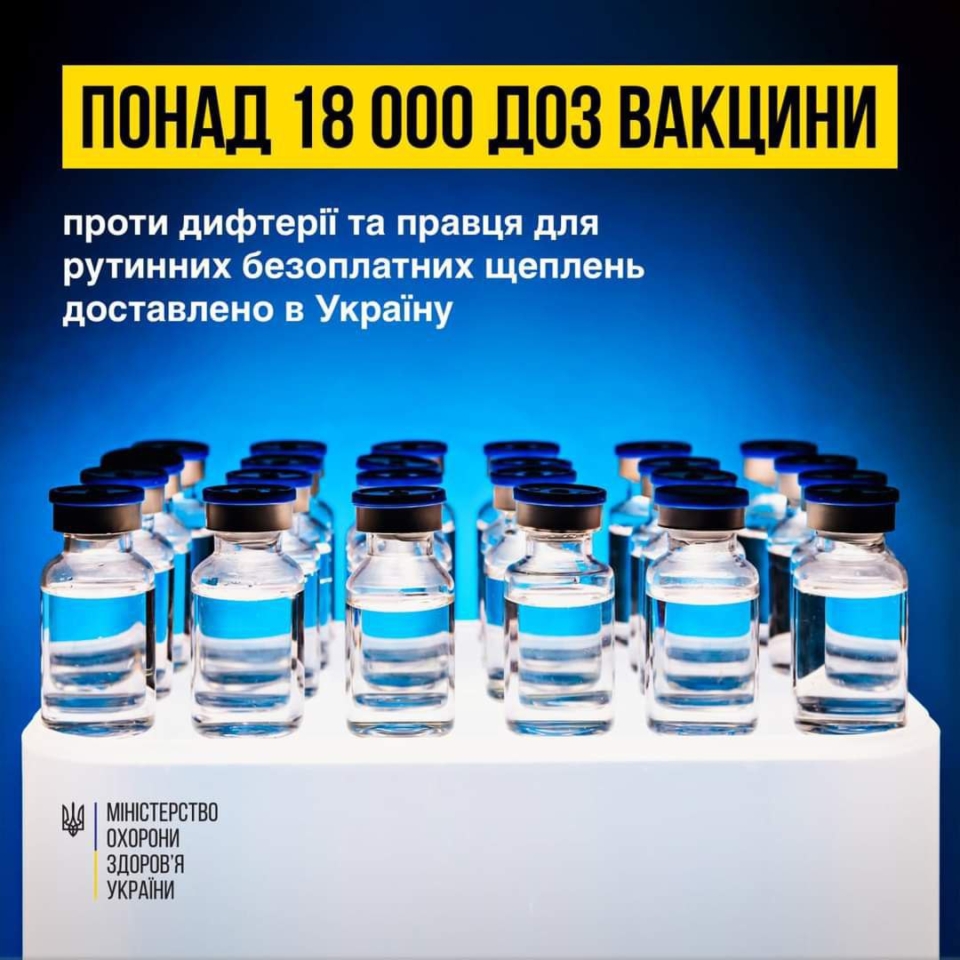 Понад 18 тисяч доз вакцини проти дифтерії та правця для рутинних безоплатних щеплень доставлено в Україну