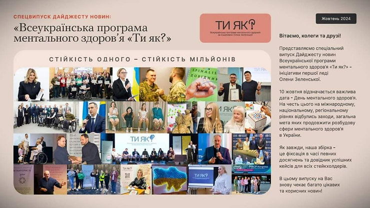 Спеціальний випуск Дайджесту новин: «Всеукраїнська програма ментального здоров’я Ти як? Регіональна координація». Жовтень 2024.