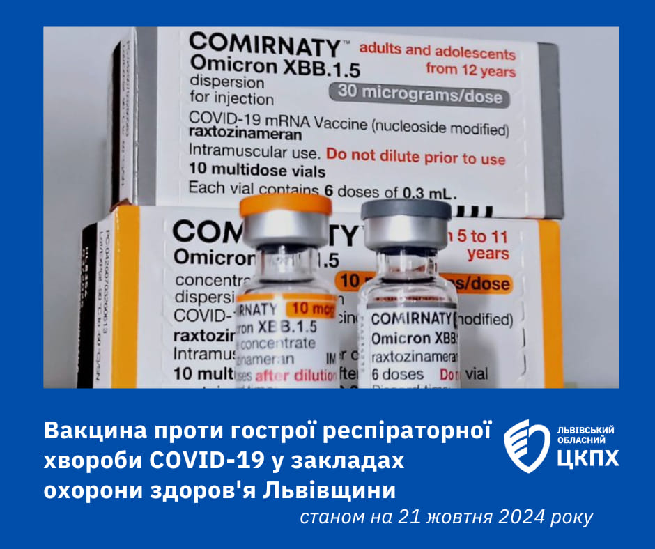 Вакцина проти гострої респіраторної хвороби COVID-19 у закладах охорони здоров’я Львівської області (станом на 21 жовтня 2024 року)