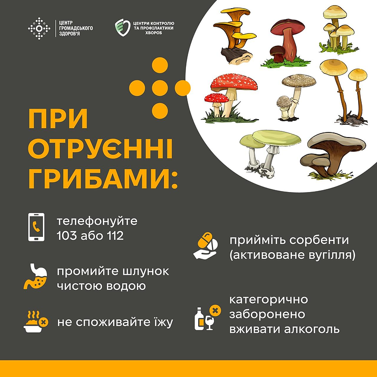 Дізнатися більше про неїстівні гриби, отруєння грибами та про першу допомогу при отруєннях можна з нашого буклету за посиланням: https://tinyurl.com/5n87b3t7