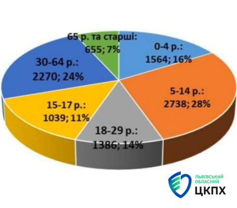 Найбільша частка хворих – у вікових групах 30-64 роки (27,29%) та 5-14 років (26,97%).